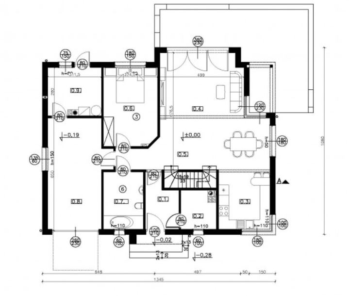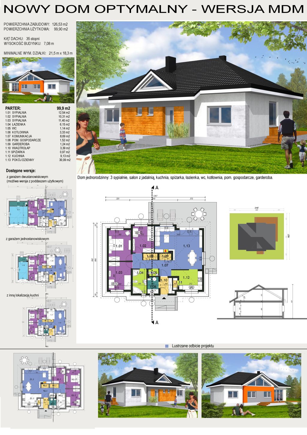 Dom z poddaszem użytkowym o pow. 144 m2 w zabudowie bliźniaczej, z garażem jednostanowiskowym. Budynek składający się z dwóch segmentów, jeden wykończony w stanie deweloperskim, drugi w stanie surowym otwartym. Cały budynek przystosowany jest pod standard energooszczędny z rekuperacją i fotowoltaiką.